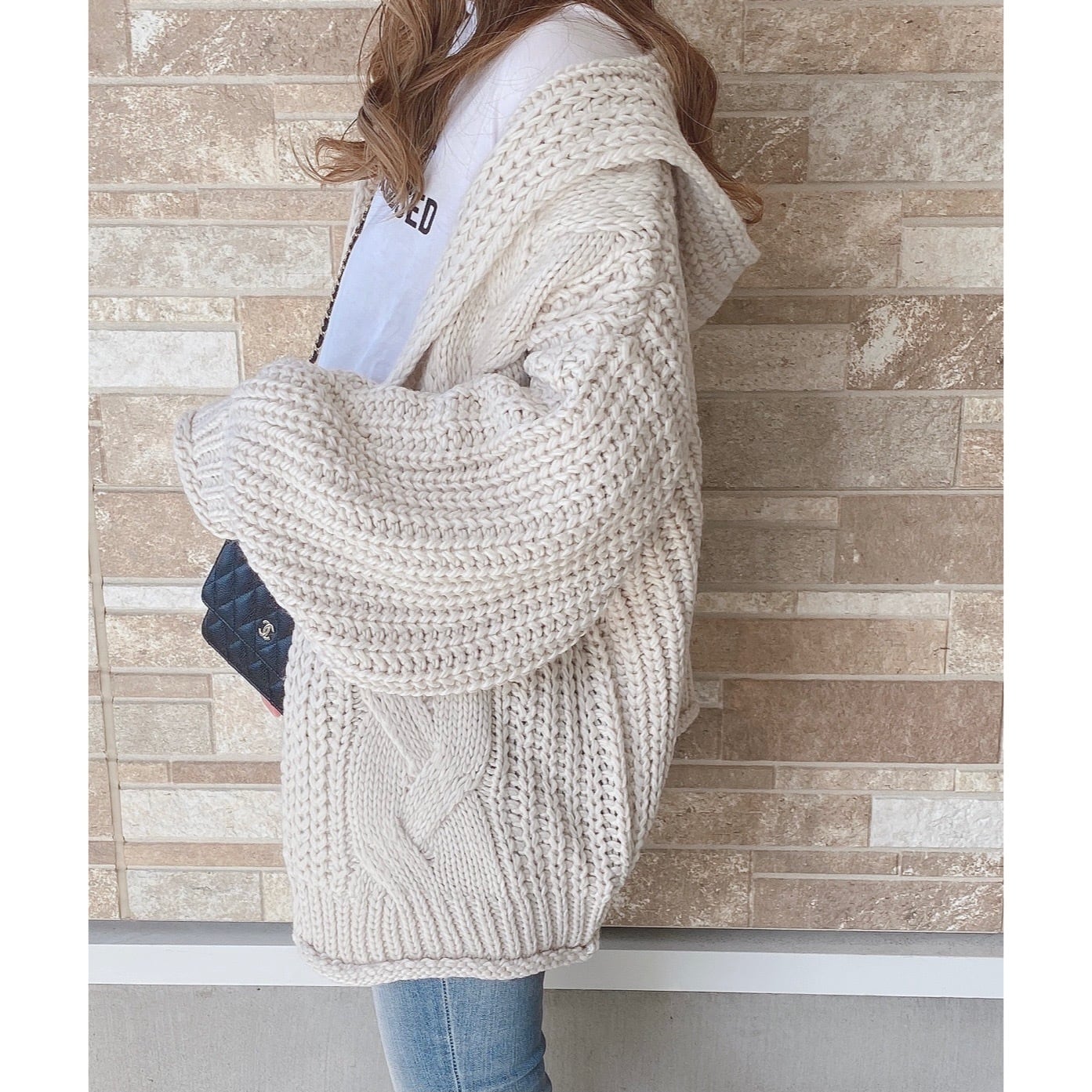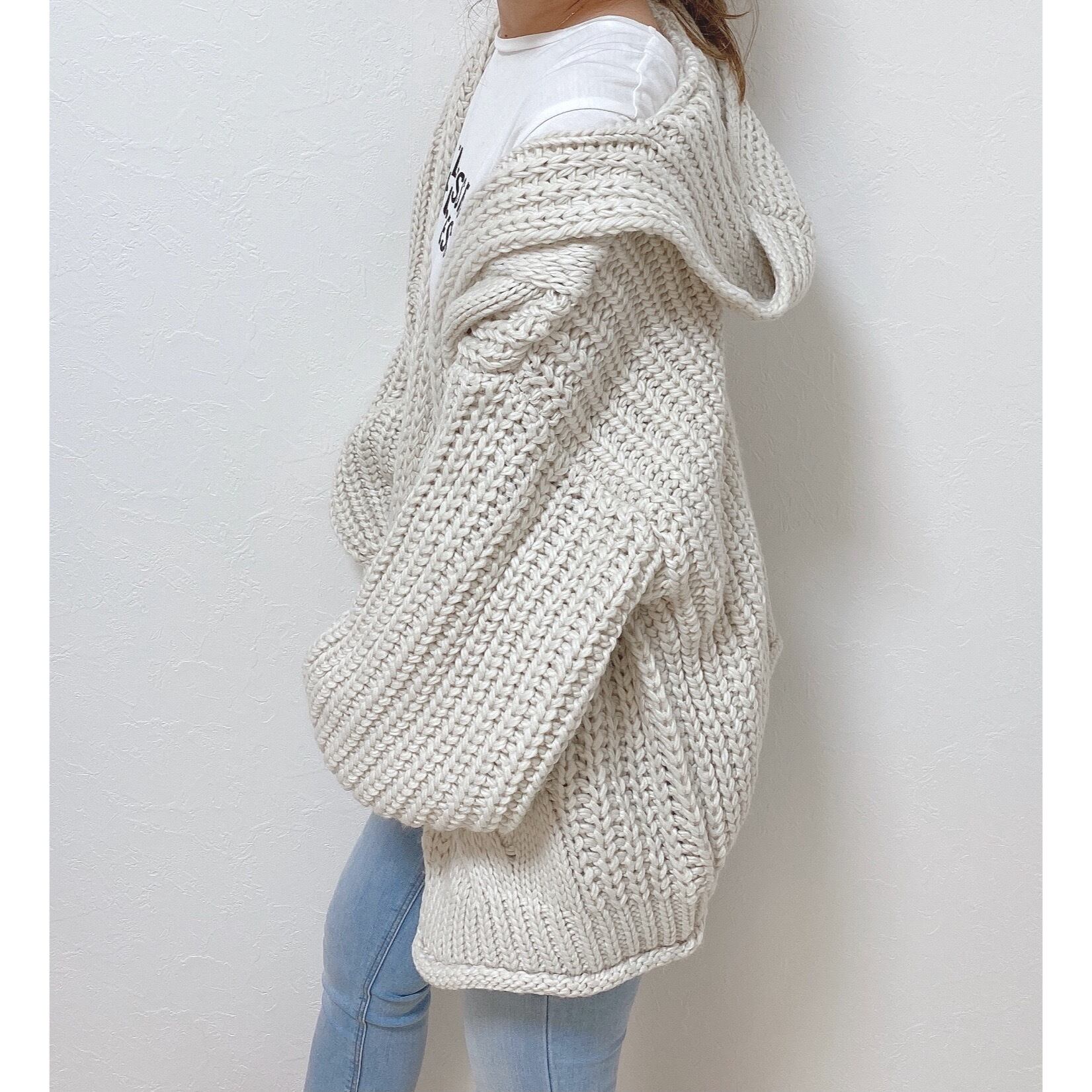 ニットケーブルフードカーデ(3色)