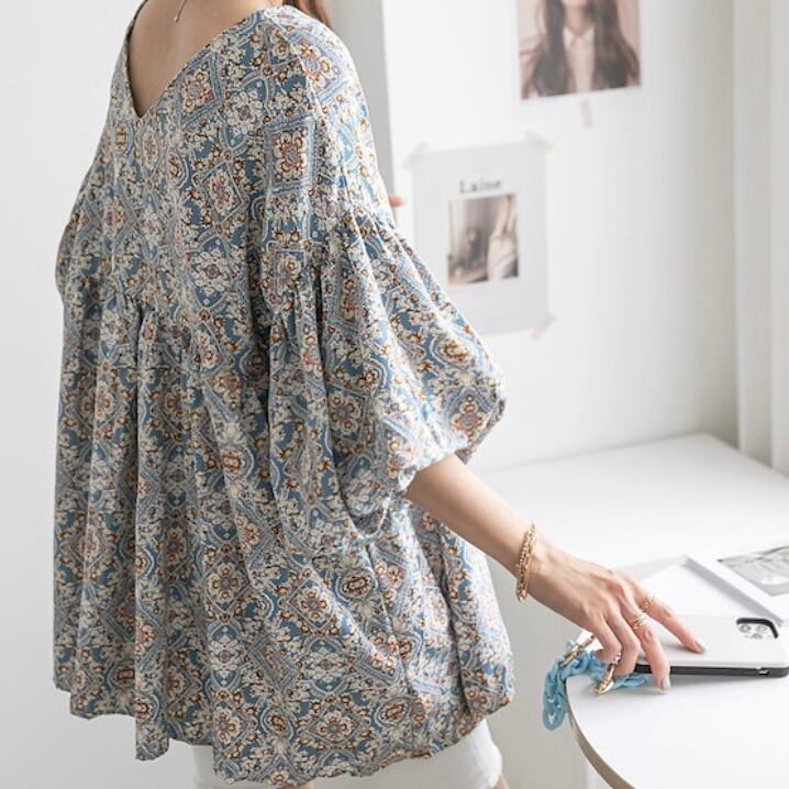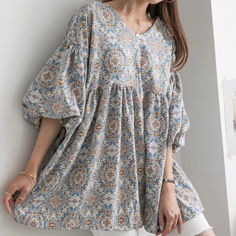 バルーン袖ペイズリー柄チュニック(4色)